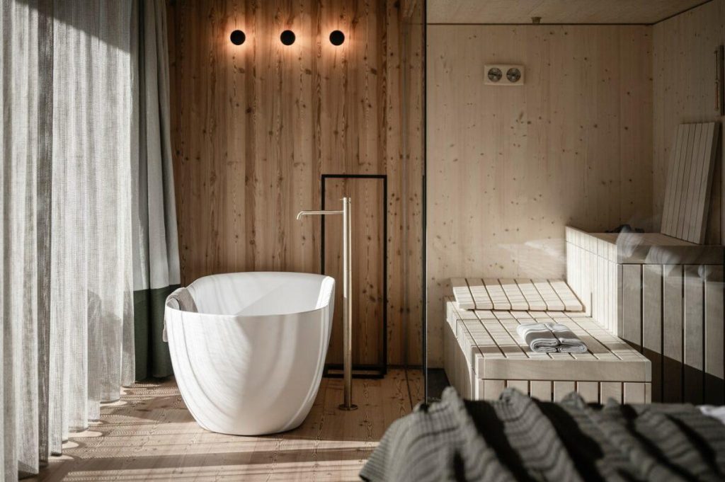 Taking a sauna is healthy – but is it sustainable? Marilou Cabatingan, 05/15/202508/16/2025 People go to a spa hotel with a sauna to relax and do something good for themselves. But can we also switch off our sustainable conscience, when taking a sauna? We talked to sustainable hotels about how to do sustainably. We also introduce you to the zero-energy sauna and take a look at the ” wacky wellness ritual” infusion. Is taking a sauna a sin or is it healthy? A traditional Finnish sauna has a dry heat of about 80 degrees and only 10 percent humidity. As you can imagine, the sauna heater has to provide a considerable amount of heat. According to one energy company, you could work on your laptop for 300 to 400 hours for the electricity used in a single sauna session. (Of course, the more people who use a sauna, the “better” the ecological balance becomes). In 2022, during the energy crisis, the topic of saunas even made it onto the German political agenda. In an interview with Welt am Sonntag, Schleswig-Holstein’s state premier Daniel Günther (CDU) argued that saunas should be turned off. He said they belonged to a category of luxury that people should “voluntarily do without”. Martin Niederstein, head of the German Sauna Association, countered that saunas are a beneficial way to take care of one’s health. Taking a sauna for your health Several studies show the positive effects of sauna on the immune system, skin and cardiovascular system. Sauna master Manuel Greifenberg agrees that “health is the number one priority”. But it can be achieved in a sustainable way. His employer, the Hotel My Arbor in South Tyrol, is committed to sustainable operations and produces part of its energy needs through a large solar system on the roof. Sauna Master Manuel Greifenberg Zero Energy Sauna A few years ago, the University of Stuttgart caused a sensation with its “zero-energy sauna”. It is operated without a power connection and runs solely on solar energy (with a thermal energy store). It shows that energy-hungry luxury is possible without fossil fuels and harmful emissions. Or, let us say: with a lot less. How to make a sauna sustainableRenewable Energy Above all, energy is the key to an environmentally friendly sauna. The “Zero Energy Sauna”, which the University of Stuttgart presented as a world first in 2022, is now a reality. And it can be found, among other places, in the OLM Nature Escape of the network in South Tyrol. “Our guests sauna in an energy neutral way, as our saunas are powered by geothermal and photovoltaic energy.” – OLM Nature Escape The circular aparthotel in Sand in Taufers is the first energy-independent hotel in the Alps and is completely self-sufficient in terms of electricity and heating thanks to geothermal probes and solar panels. What’s more, you can enjoy a sauna in complete privacy, as some of the aparthotel suites have their own private saunas. “Zero-emission sauna” in the suites of the aparthotel Survey: 43% of wellness hotels use natural gas The situation is different in a large proportion of wellness hotels. According to a survey of wellness hotels, 43% use natural gas to heat their spa areas. This means that if you simply check into a wellness hotel, there is a good chance that a fossil fuel will be burned for your sauna session, which in its entirety has a negative impact on the environment. Environmentally friendly wood Another environmental aspect of saunas is the wood. Wood is a natural and biodegradable material. However, anyone who uses wood should take care to preserve the forests. This is why OLM relies on an FSC-certified supplier. The saunas are made of spruce, the apartments of larch. Excursus: Seal for wood from sustainable forests: When it comes to sustainable certification of wood, the Forest Stewardship Council (FSC) is currently the “only credible seal”. This is the view of Greenpeace and the Nature and Biodiversity Conservation Union (NABU). Even though Greenpeace left the FSC in 2018 and there are also criticisms of the FSC seal, it is still the best functioning seal for forest protection and species conservation worldwide. The main point of criticism is that FSC also certifies tropical timber. Therefore, FSC-certified wood that is NOT tropical wood is the best. The PEFC label is considered less strict and is also criticized for allowing the use of pesticides. Here you can enjoy an environmentally friendly sauna The wellness hotels in the Green PearlsⓇ network are characterized by the fact that they all rely on renewable energies (albeit to varying degrees). In addition, you can often experience fantastic views, natural materials and other special features. Naturresort Gerbehof: Wood from the hotel’s own forest and green electricity An eco-friendly sauna followed by a Kneipp treatment Naturresort Gerbehof is located near Friedrichshafen on Lake Constance, on the edge of its own forest property and surrounded by fruit tree plantations. The wood used for the hand-carved saunas comes directly from the resort’s own forest. Only green electricity is used throughout the resort (including the saunas). To avoid wasting electricity, the saunas are operated by appointment only. Hotel Das Rübezahl: Event-based energy boost and self-generated electricity Sauna Master Istvan in a traditional Scottish kilt during an infusion show. The weekly calendar of the Hotel Das Rübezahl in Füssen in the Allgäu region of Germany lists the dates for “Event Infusions & Meditation.” The infusions by sauna master Istvan (who also teaches yoga and meditation classes at the hotel) depend on the mood. Sometimes he comes in a Rastafarian cap as Bob Marley, sometimes in a Scottish skirt and bagpipes. “Sauna should be fun,” says Istvan. In addition to the saunas in the spa area, the hotel has rooms with private infrared saunas. According to the hotel, the saunas are heated “primarily with self-generated electricity”. If 
